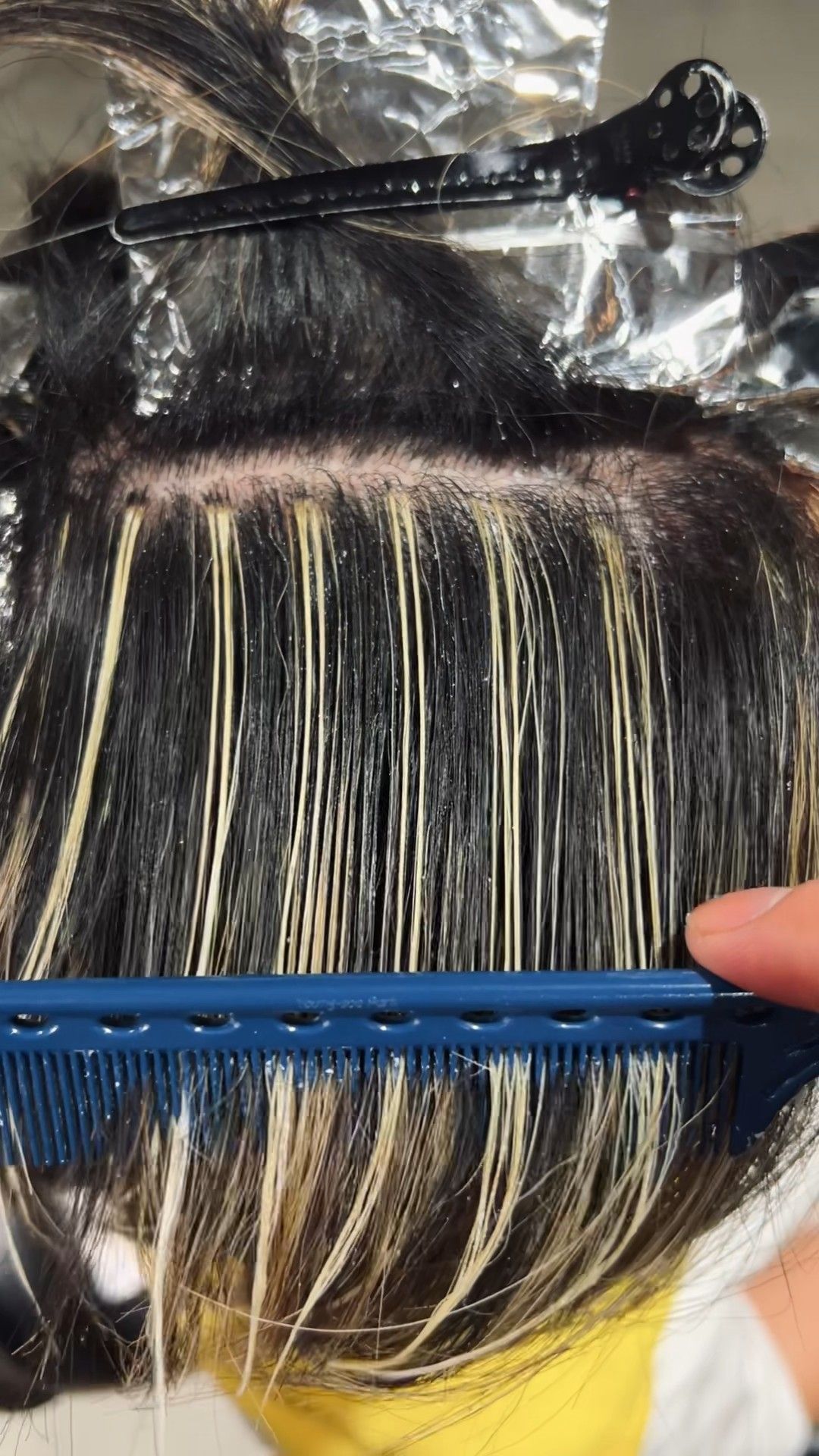 もともとの地毛(黒髪や白髪)を染めずにハイライトを入れていくデザインです。
