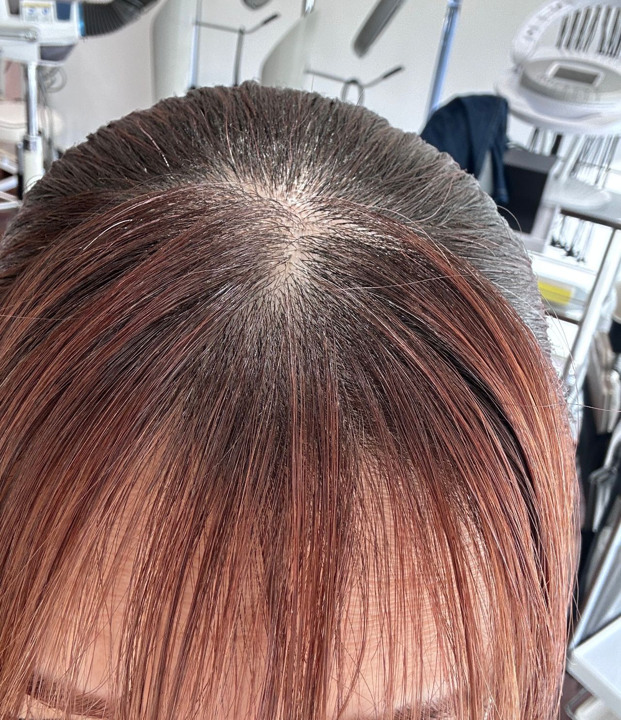 頭の表面には酸性ストレートパーマ(縮毛矯正)がしてあります。
