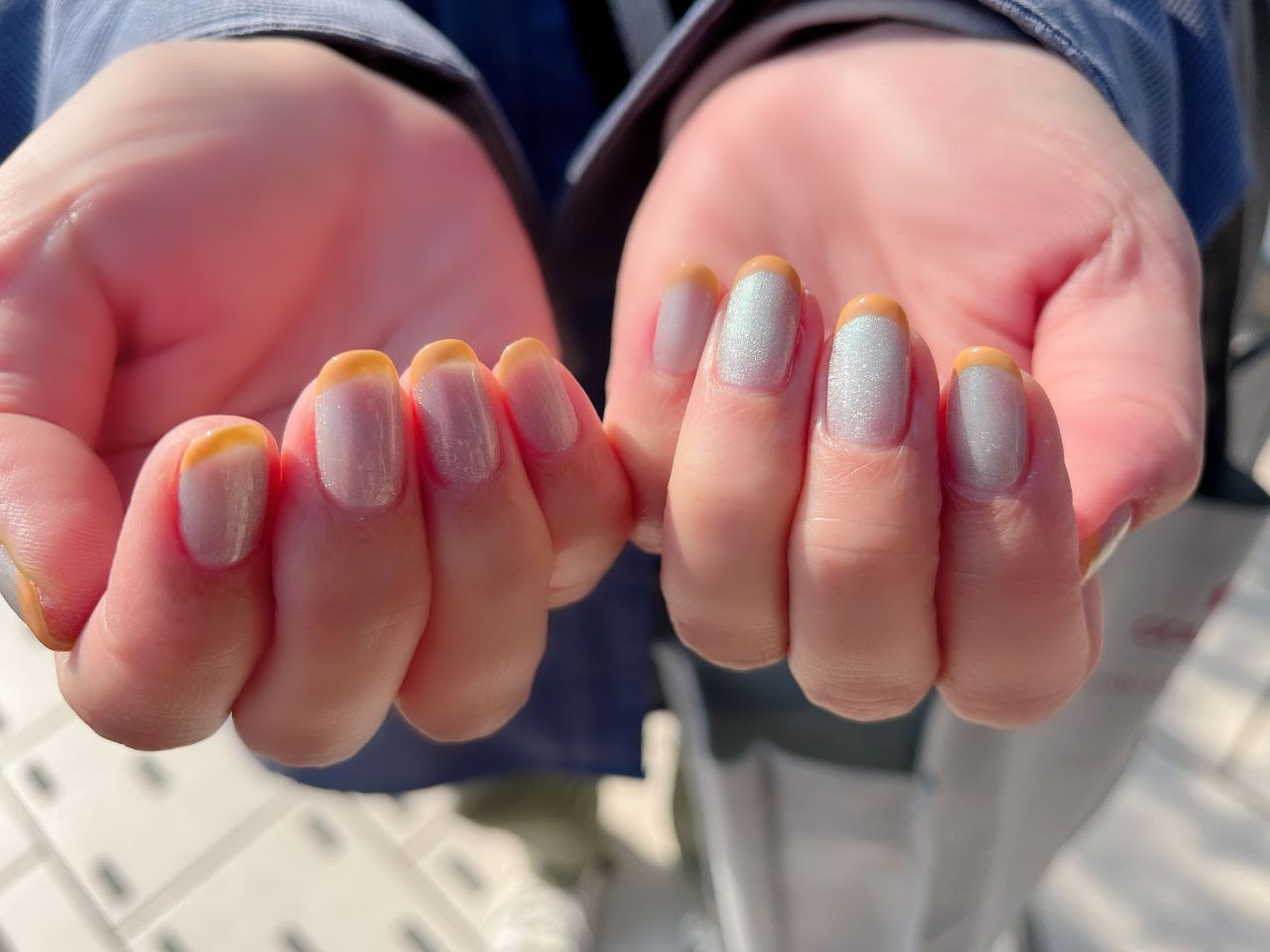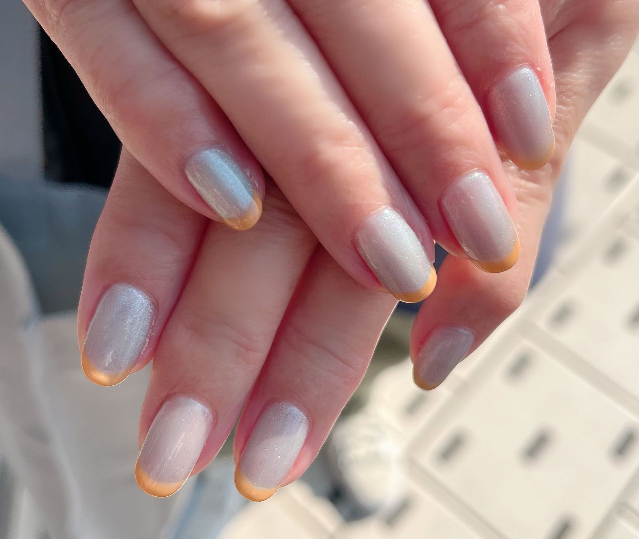 ブルー×マグネットベースにオレンジ色でフレンチ✨