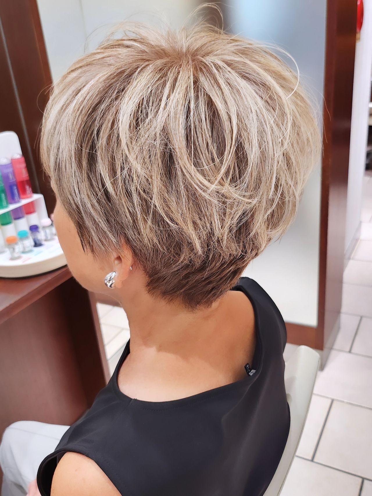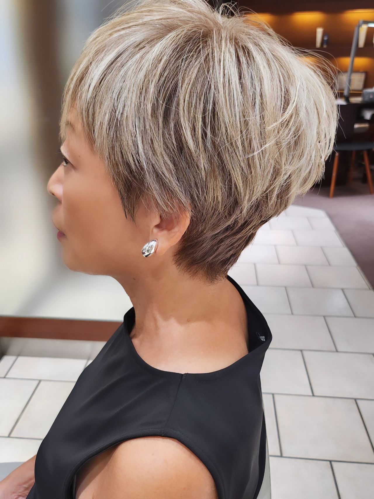 今回は、ぱつっと短めの個性派ボブから始まり、マッシュショート、そして洗練されたハンサムショートへと移行したお客様の変化をご紹介します。50代・60代の方にも似合う“進化するショート”をぜひご覧ください。