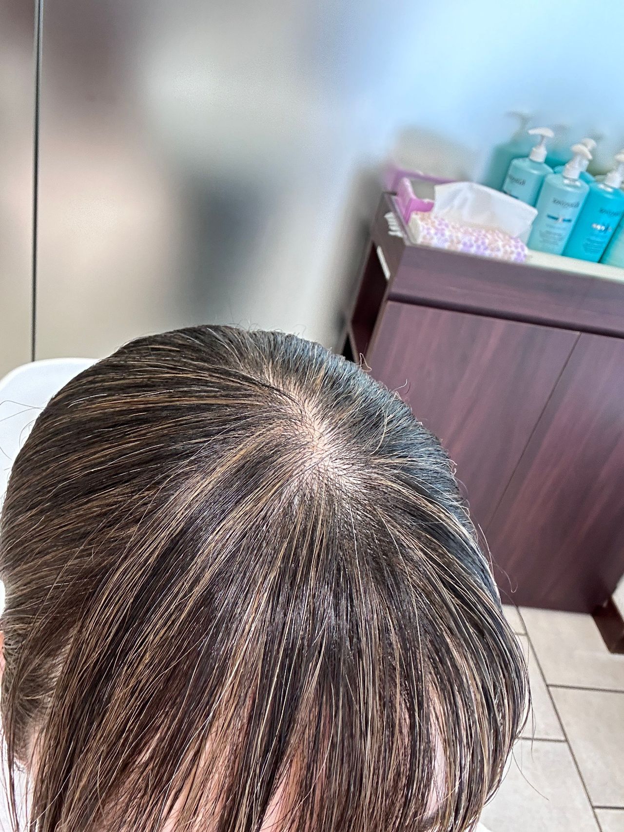 黄色で囲ったところが特に白髪が気になっていたところです。ハイライトで気にならなくなりました♡♡♡