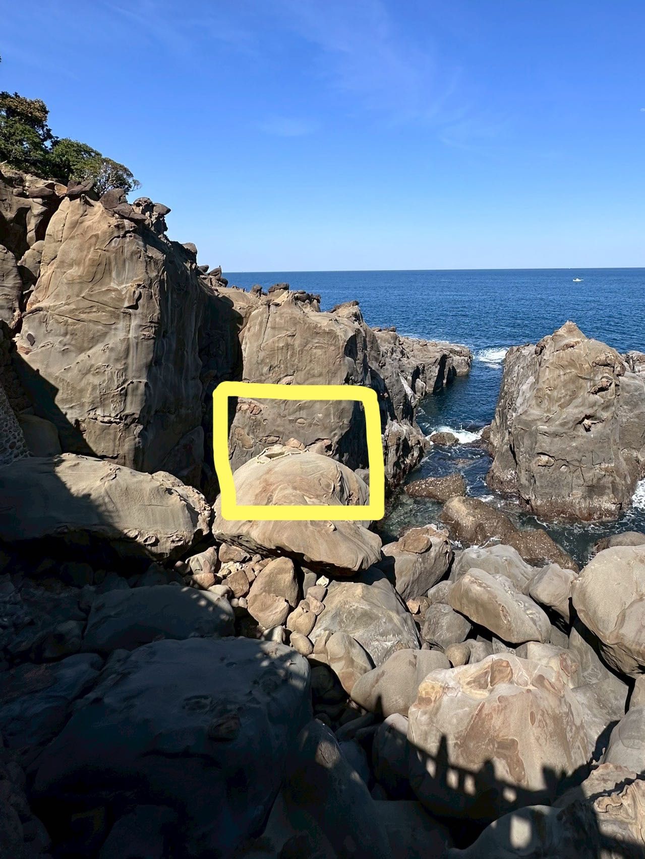 お客様からご紹介いただき、テレビでも以前見たことのあった場所で、有名なのは柵のついた崖から岩場の上にある囲いの中に小石のようなものを投げる運試し的なもの。5回チャンスを貰えます。