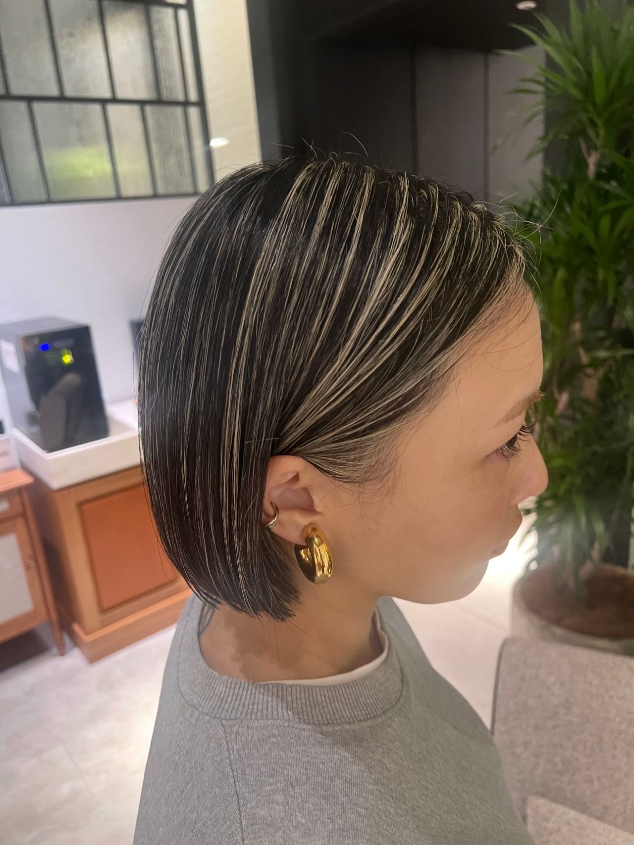 黒髪と白髪をベースにハイライトを入れました!