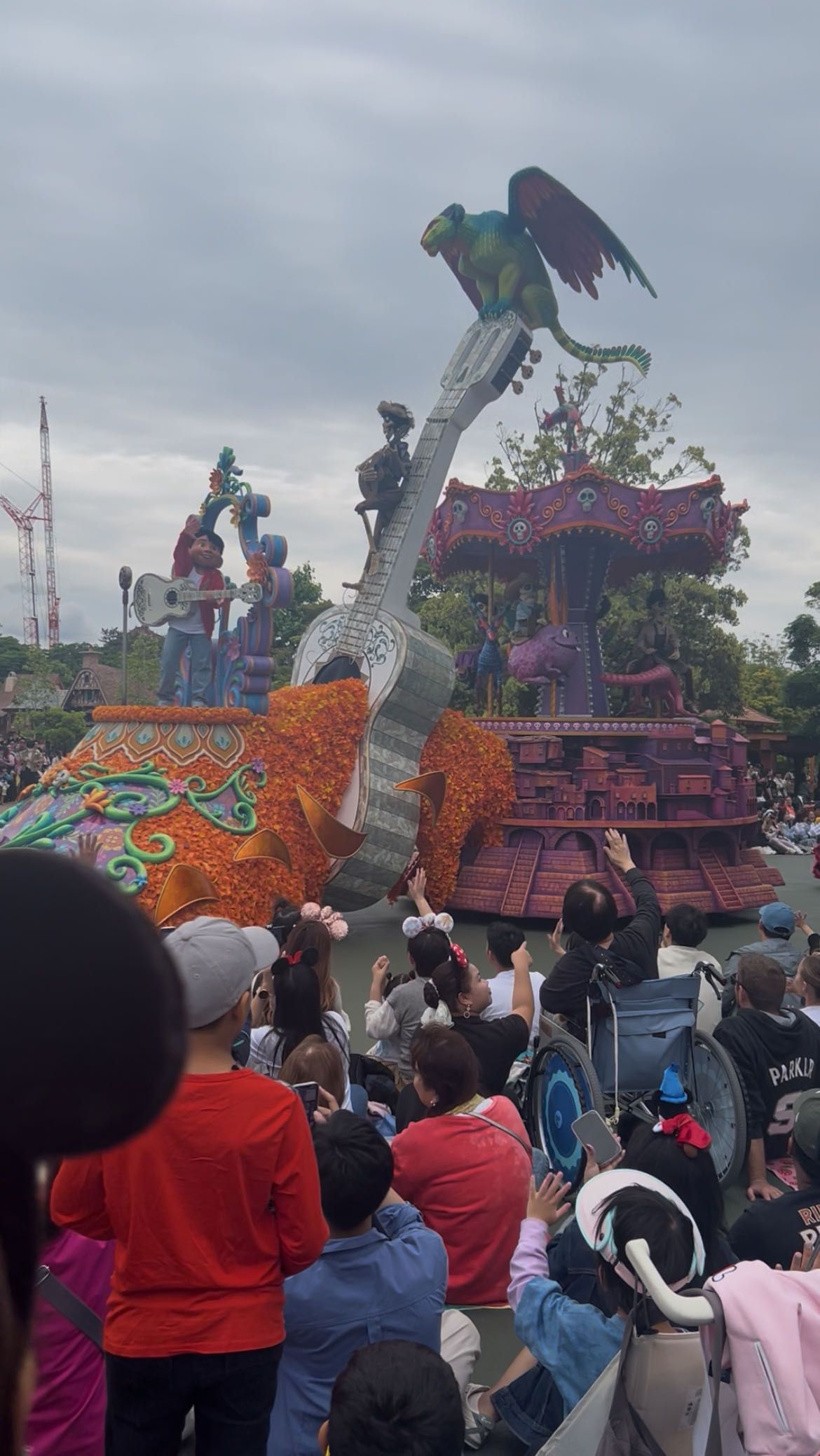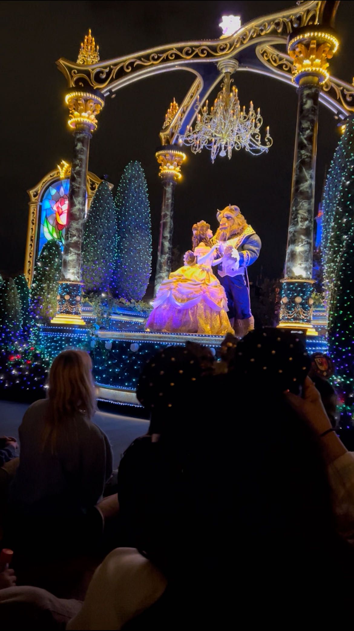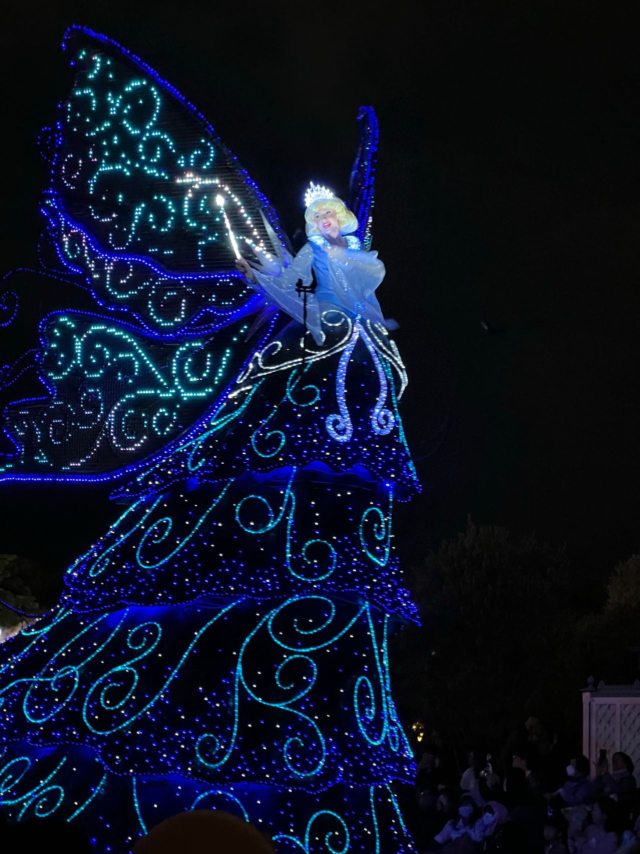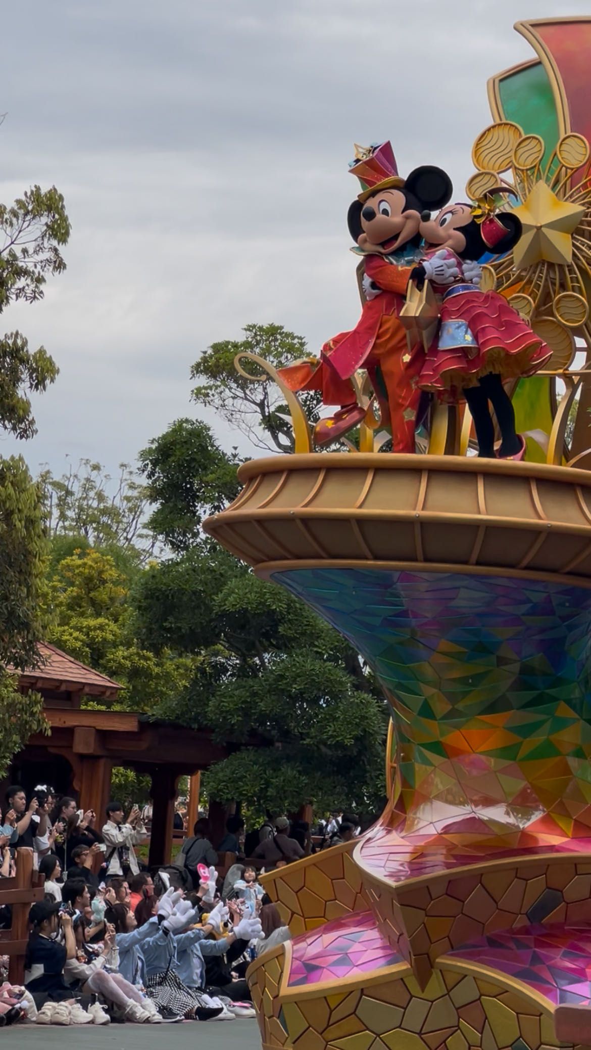 昼とはうってかわって夜はイルミネーションをふんだんに使用した足場と共に向かってきてくれます!1枚目のミッキーはこっちに向かって手を振ってくれました!笑
