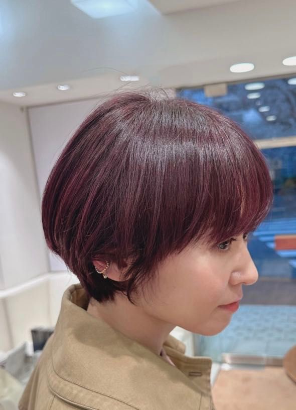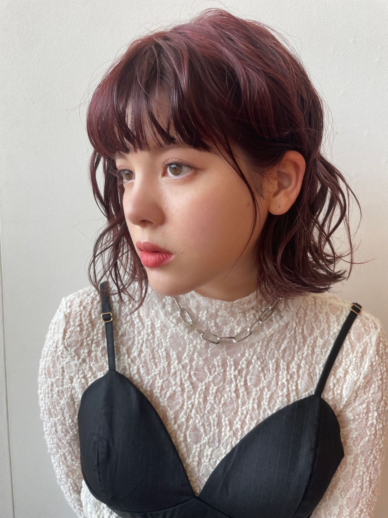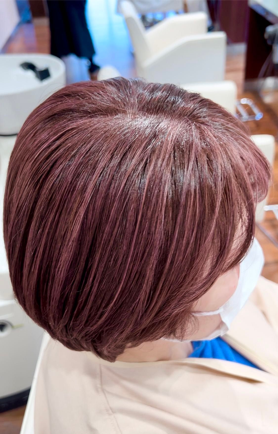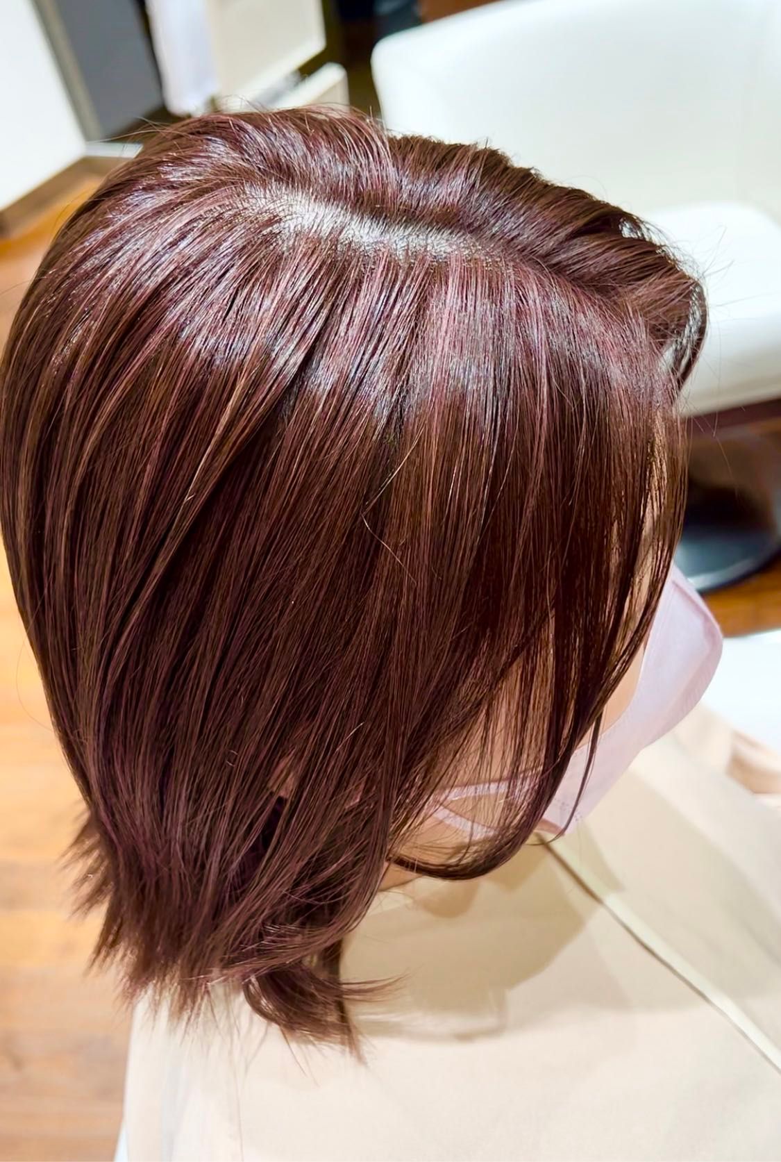 コチラ2つのピンクはやや青みの強いグレープのようなディープピンク♡このピンクも元の髪色が少し明るいと深みのある色をハッキリと感じるツヤ感を表現することができます✨