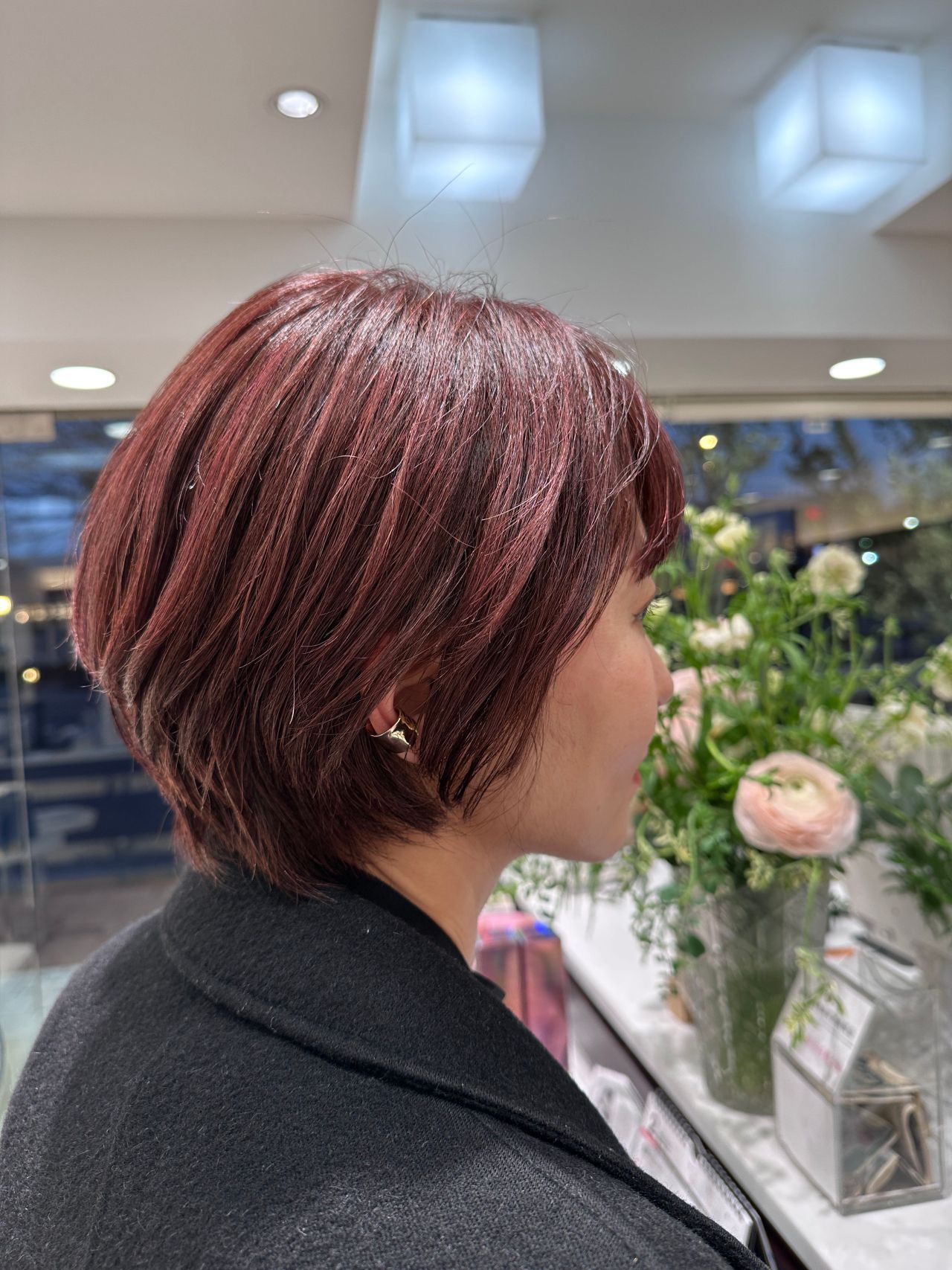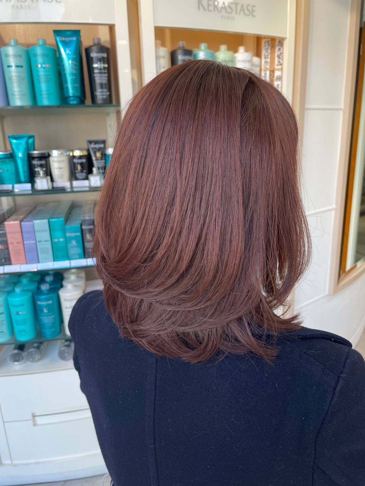 ピンクの強さは元々の髪の毛の明るさで変化が出ます。1色でより鮮やかさを求めるときは、スタートの髪色がすでに明るくないと難しいです。