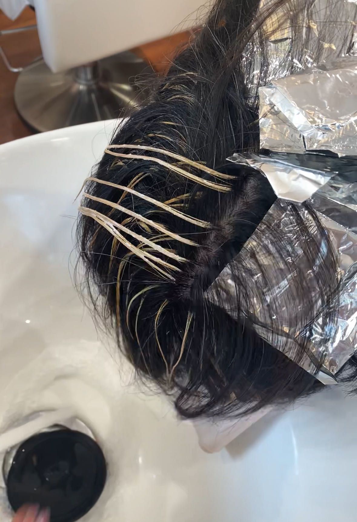 写真には無いのですが、ハイライト前に前処理を行います。(※ケアハイライトのメニューになります※)