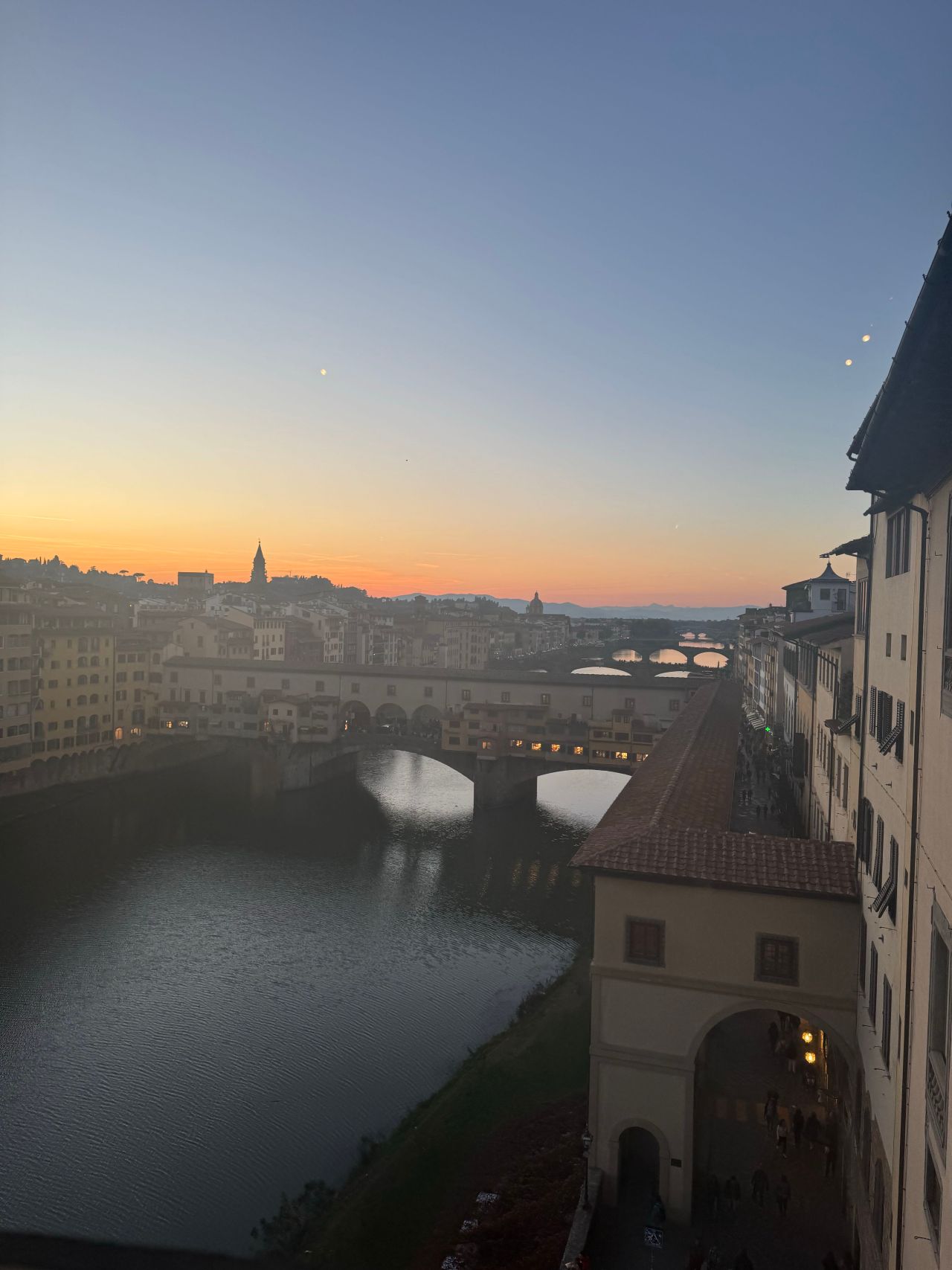 宝飾店が立ち並ぶヴェッキオ橋は第二次世界大戦後フィレンツェで唯一残った橋、