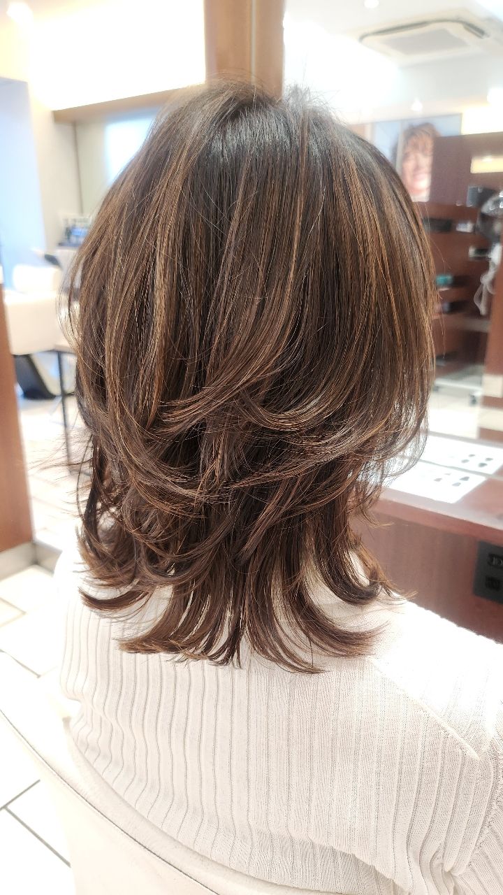 【40代50代女性必見】ボリュームアップ! ブリーチなしハイライト×くびれ外ハネで若見えヘア