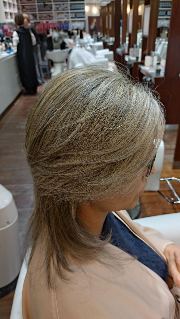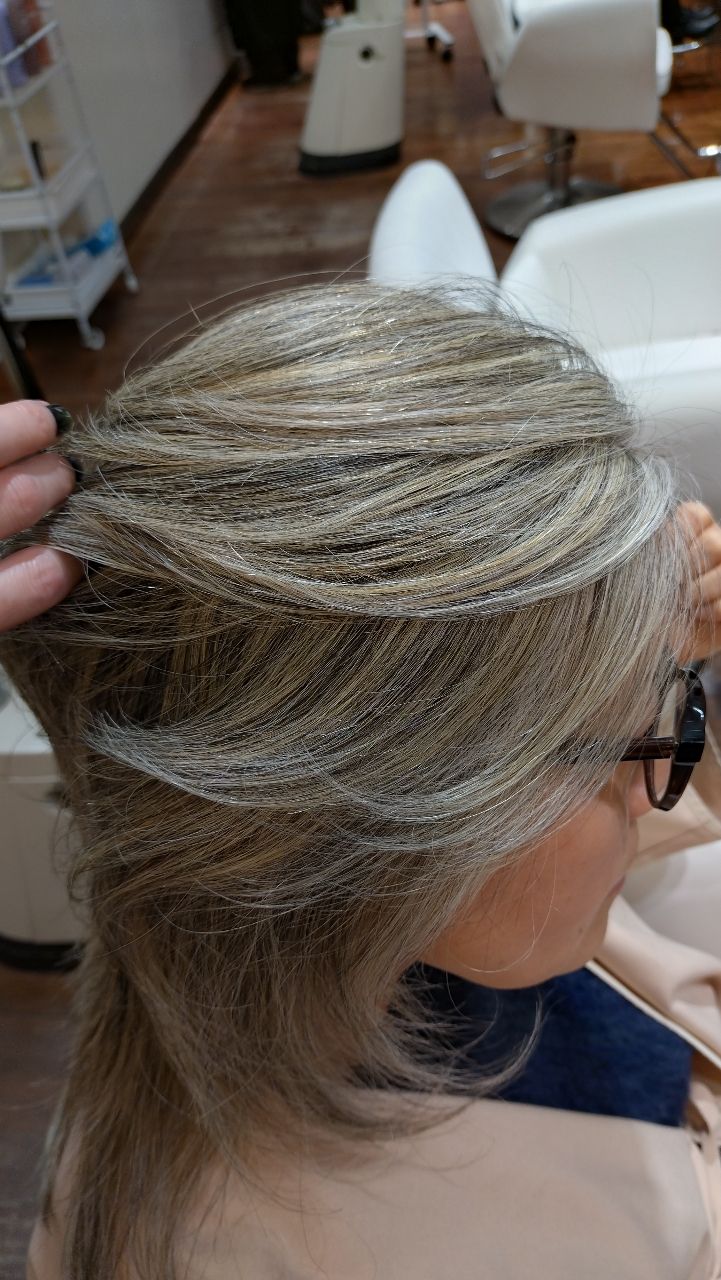 白髪が多いからこそ!ブリーチハイライトで外人風ヘアカラーに大変身