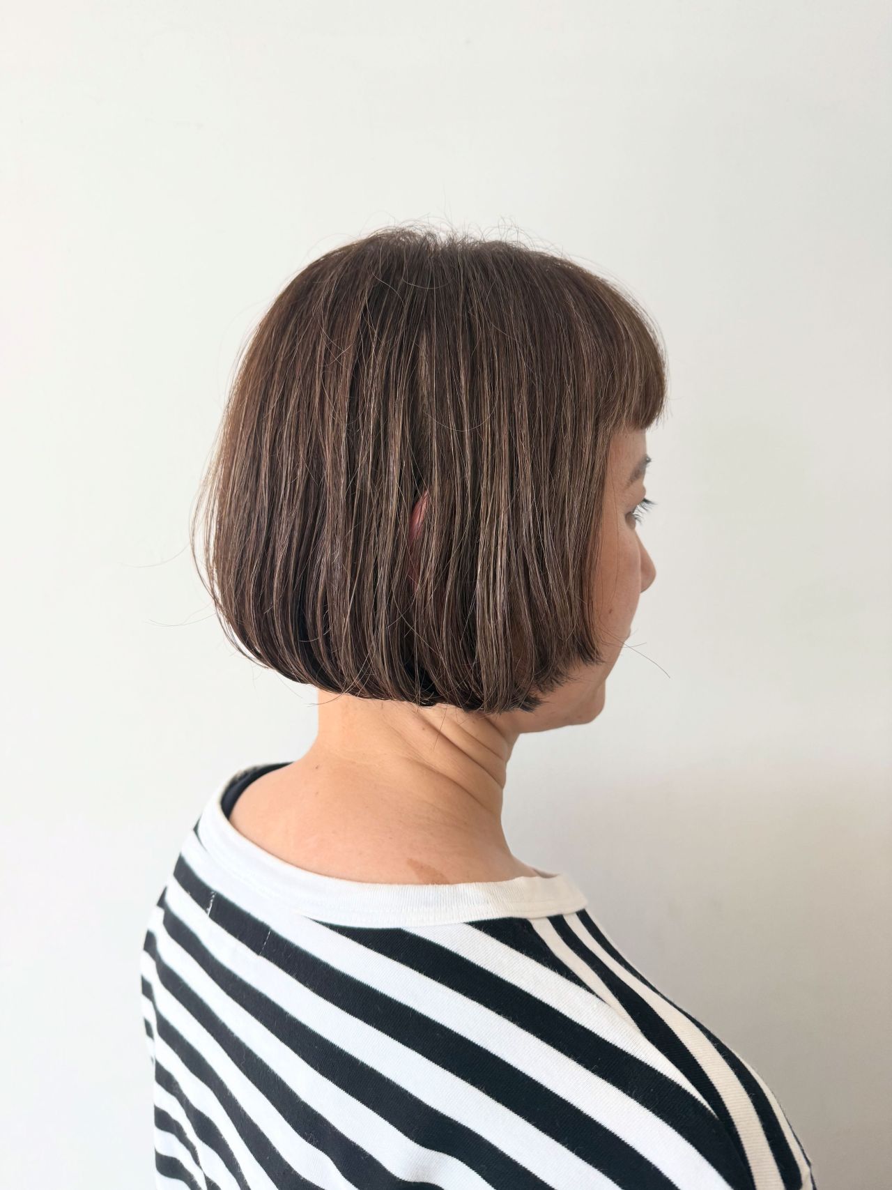 このようにぱつっともふっとボブで首元すっきりヘア♡タートルネックと合わせても素敵です!